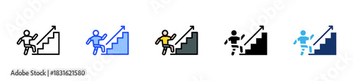 promotion, ladder, achievement, success, climb, upward, progress, recognition, position, reward, level, upgrade, manager, rank, career, title, rise, opportunity, motion, icon, glyphs, black, solid, vector, illustration, collection, many-coloured, line, blue, outline