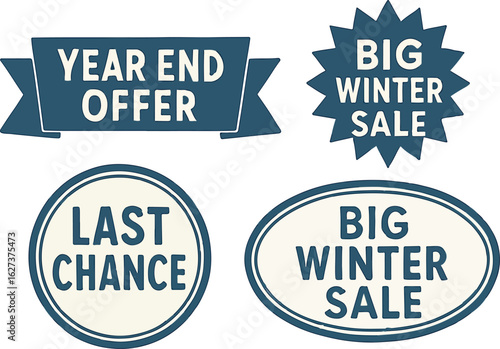Promotional Banners for Year End Offers and Winter Sales with Different Shapes and Styles Emphasizing Discounts