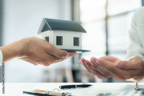 Property investment concept, image of small house model on the table. and home loan insurance.