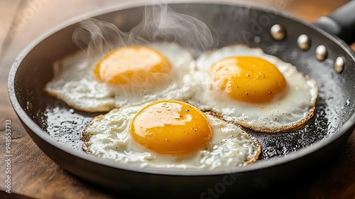 Protein-rich eggs cooking in a frying pan, perfect for breakfast, nutritious start