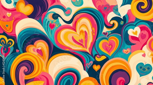 Psychedelic-style Valentine's box with swirling colors and trippy patterns, bold contrasts, surreal feel