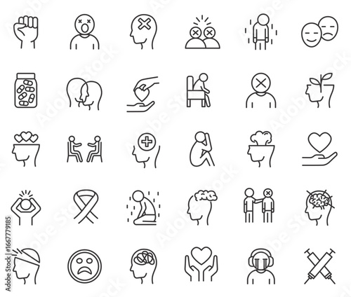 psychology, mental, icon, brain, set, health, therapy, emotion, vector, human, treatment, anxiety, mind, thinking, psychotherapy, problem, line, thin, head, depression, person, people, support, illustration, isolated, medicine, help, symbol, disorder, outline, intelligence, personality, imagination, process, education, concept, stress, disease, collection, mood, solution, positive, science, idea, design, abstract, social, thinks, brainstorm