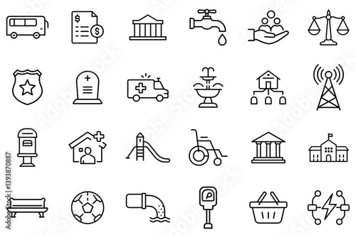 utility, public, infrastructure, city, service, government, justice, health care, ambulance, hospital, school, park, fountain, playground, wheelchair, mailbox, parking, tap, sanitation, water, drainage, electricity, power, emergency, police, law, safety, telecom, tower, transportation, bus, bill, tax, budget, equity, support, bench, sport, soccer, recreation, accessibility, housing, administration