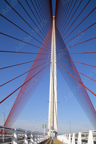 bridge, bridge, place, place, toledo, river, river, gash, cross, cross, cross, high, height, cotta, daytime, day, vertical, vertical, slanted, steel, concrete, cable, cable, route, route, touristy, view, radio, radial, new, modern, blue, heaven
