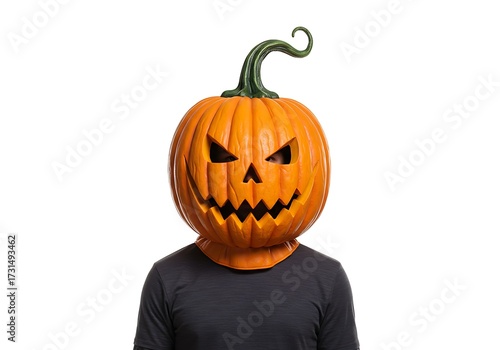 pumpkin, costume, halloween, head, face, orange, carved, scarey, holiday, isolated, clothing, person, portrait, black, shirt, design, decoration, art, image, photo, studio, white, background, lighting, copy space, prop, display, product, illustration, vector, carving, fun