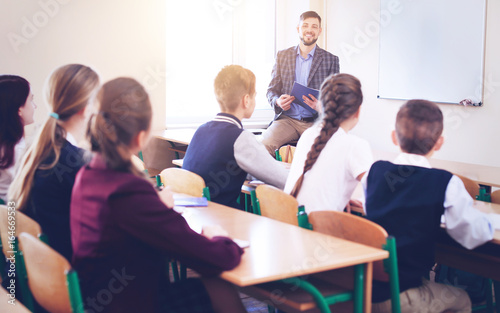 Pupils listening teacher in classroom