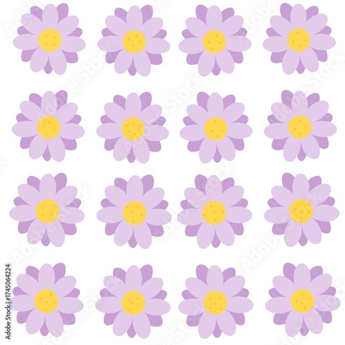 purple, yellow, daisy, flower, flower, floral, background, vector, design, nature, pink, illustration, spring, seamless, decoration, summer, set, art, blossom, colours, bloom, element, wallpaper, plant, beauty, texture