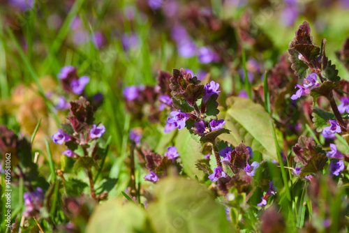 purple flower in the green grass close-up