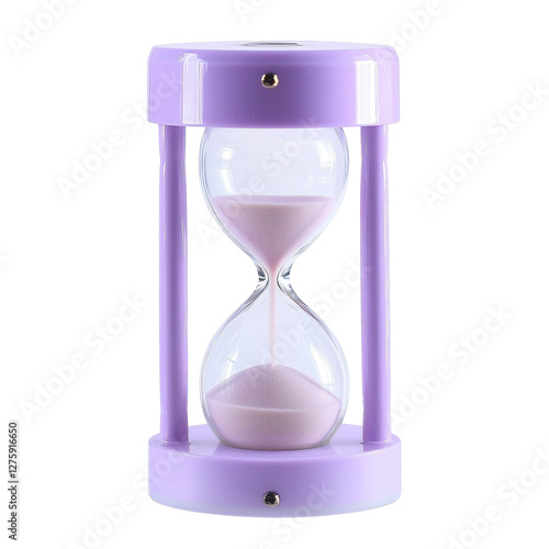 Purple hourglass timer with sand flowing inside isolated on png transparent background, cut out