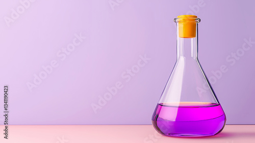 Purple Liquid Filled Erlenmeyer Flask On Pink And Lavender Background
