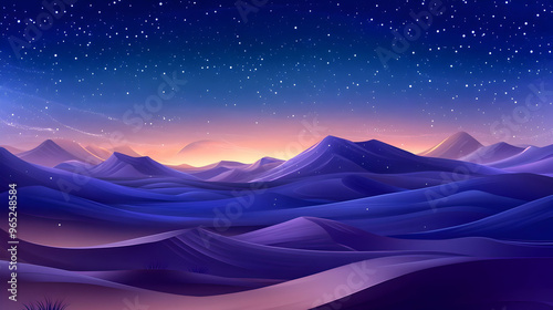 mystical, magical, serenity, starry, twilight, peaceful, tranquil, desert, screen, dusk, poster, purple, cover, graphic, scenery, wallpaper, sand, night, dune, range, illustration, dreamlike, evening, art, abstract, digital, sky, design, banner, nature, background, landscape, mountain