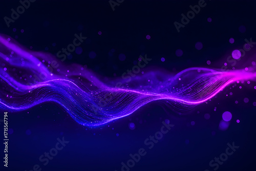Purple Neon Light Wave with Particles on Dark Background – Abstract Tech Energy Flow