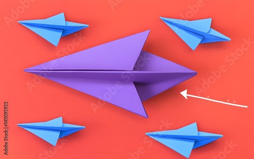 origami, leadership, direction, forward, success, competition, strategy, goal, progress, innovation, motivation, teamwork, business, concept, creative, design, abstract, art, illustration, red background, arrow, growth, future, vision, ambition, achievement, target, destination, path, journey, flying, flight, perspective, unique, different, standing out
