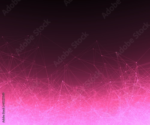 Purple pink gradient square web banner background. Fantasy abstract technology, engineering and science wallpaper with particles and plexus connected lines. Wireframe 3D illustration and copy space