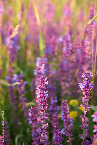 Purple sage flowers blooms in the summer meadow.