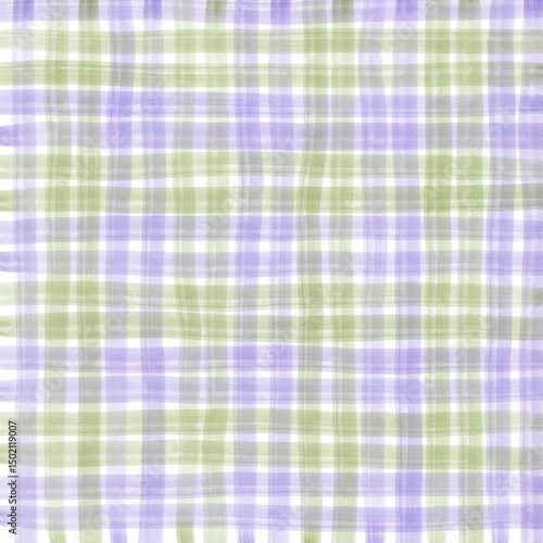 Purple Sage Green Plaid Gingham Check Hand Drawn Background Pattern Overlay