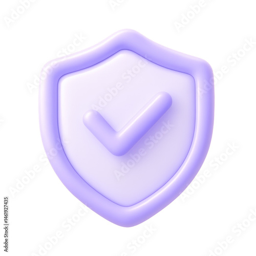 Purple Shield Checkmark 3D Icon: A 3D render of a light purple shield with a checkmark, symbolizing security, protection, and approval.