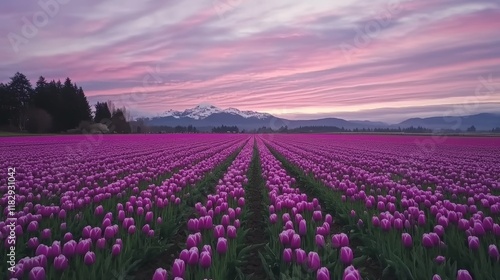 tulip, purple, field, bloom, nature, pink, spring, row, vibrant, scenic, blossoming, dawn, breathtaking, daybreak, pastel, picturesque, agriculture, landscape, botany, beauty, serene, sunrise, mountain, flora, idylli, flower, tranquil, farm, colours, rural, sky, majestic, perspective, cloud, palette, stem, horizon, illumination, light, plant, line, growth, panorama, leaf, photo