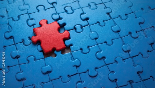 Puzzle piece in focus blue background conceptual image minimalist style top view creativity