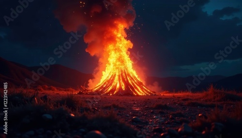 night sky, wildfire, fire, balefire, flames, hot, burn, heat, burning, night, flames, smoke, red, campfire, danger, light, volcano, orange, lava, wood, blaze, eruption, dark, explosion, yellow, camp, sky