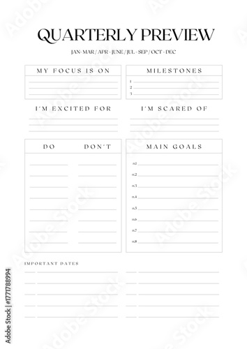 Quarterly Review & Quarterly Preview Planner Template | Elegant Minimalist Productivity Planner - 1