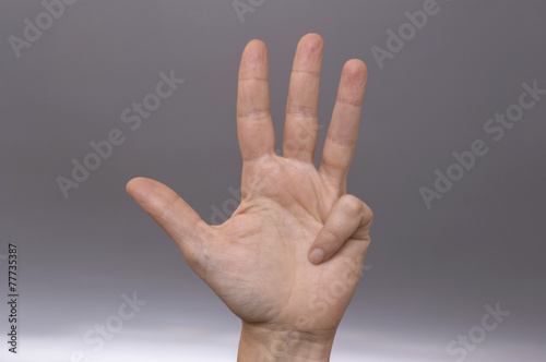 signal, 4, number, hand, finger, palm, indicating, count, show