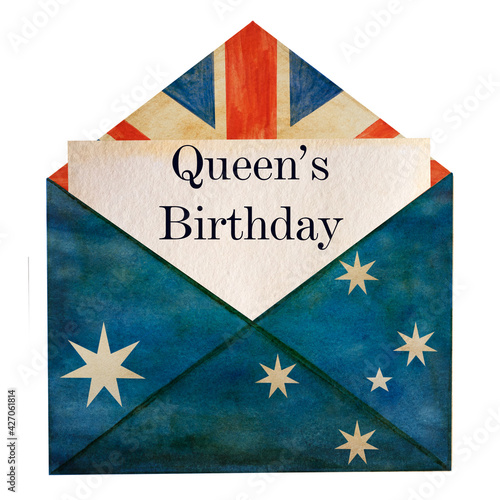 queen, birthday, elizabeth, 2, day, western, australia, australian, flag, national, happy, card, holiday, empty, layout, symbol, background, congratulation, postcard, invitation, patriotic, topview, celebration, beautiful, white, isolated, text, wooden, poster, vintage, retro, banner, table, greeting, no people, closeup, illustration, design, envelope, mail, letter, watercolor, painted, drawing, lettering, inscription, paper, lying