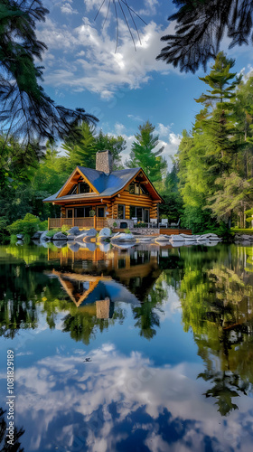 Quintessential Vacation Log Cabin Nestled Between Pristine Lake and Dense Pine Forest