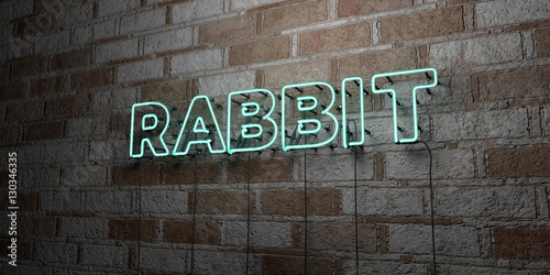 RABBIT - Glowing Neon Sign on stonework wall - 3D rendered royalty free stock illustration. Can be used for online banner ads and direct mailers..