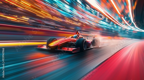 Racing car at high speed. Racer on a racing car passes the track. Motor sports competitive team racing. Motion blur background. digital art