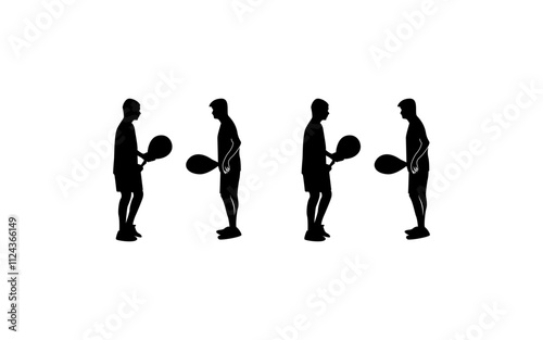 Racquet Sports .collection of male pickleball player silhouettes isolated on white background.Tennis racket vector illustration, clipart style tennis racket symbol