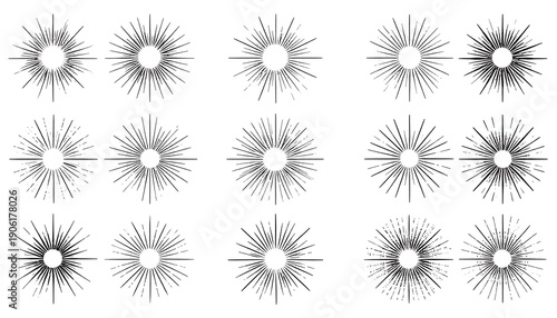 burst, radial, sunburst, vector, design, element, starburst, light, illustration, retro, vintage, graphic, abstract, shape, ray, explosion, shine, sun, decoration, symbol, art, ornamental, decorative, hipster, black, white, isolated, collection, set, pattern