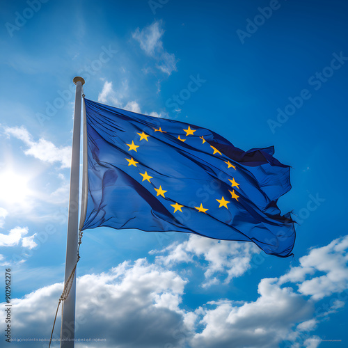 Radiant European Union Flag Against Clear Blue Sky: A Symbol of Unity and Strength