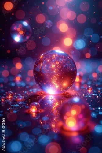 Radiant glowing orbs suspended in a kaleidoscope of colors, dazzling display, shiny light and glitter background, cosmic energy