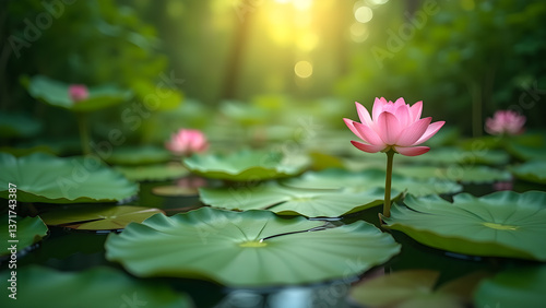lotus, flower, pink, water, lily, pad, duck pond, serene, nature, flora, calmness, sunlight, calm, peaceful, bloom, aquatic, green, floral, beautiful, elegant, plant, idylli, natural, background, botanical, fresh, blossom, delicate, vibrant, purity, beauty, health, spa, wellness, garden, floating, closeup, zen, spring, summer, meditation, light, relaxing, peacefulness
