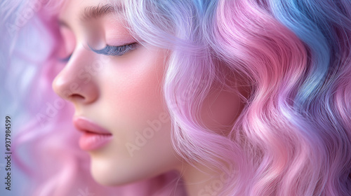 pastel, purple, hair, freckle, beauty, portrait, wave, soft, delicate, radiant, woman, coiffure, closeup, dreamy, skin, gentle, charming, aethereal, feminine, elegant, glow, natural, smooth, skincare, styling, inspiration, shot, glowing, tone, colours, facial, feature, photo, wavy, trend, face, complexion, pretty, hairstylist, artistic, fashion, model, glamour