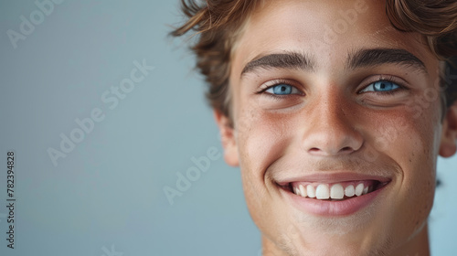 Radiant Young Man with Striking Blue Eyes, A Portrait of Happiness