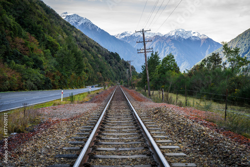 railway, railroad, rail, train, track, travel, transportation, landscape, snow, track, steel, road, nature, rail, transport, way, mountain, green, perspective, line, forest, metal, horizon, journey, mountain