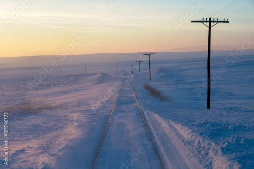 Railway, winter, snowy background