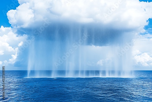 rain, ocean, cloud, shower, sky, water, blue, storm, weather, nature, landscape, cloud, drop, summer, wet, climate, sea, outdoors, falling, overcast, scenic, horizon, sunlight, stormy, daytime, natural, view, droplet, tropical, atmospheric