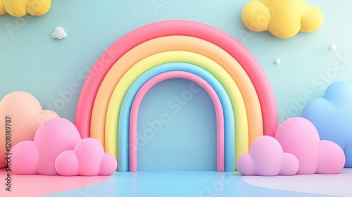 Rainbow arching over a field with clouds, symbol of hope and beauty, vibrant rainbow