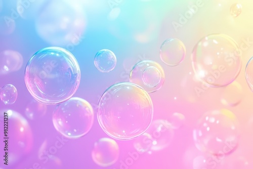 Rainbow gradient bubbles floating on a vibrant abstract background with light reflections and bokeh effect - Generative ai. Beautiful simple AI generated image