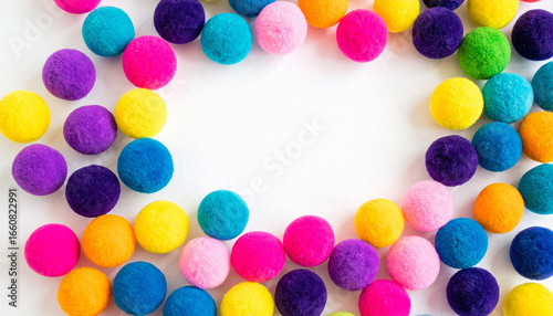 Rainbow of Creativity: An enchanting display of vibrant, colorful pom-poms arranged on a soft surface, ready to ignite inspiration and artistic endeavors.