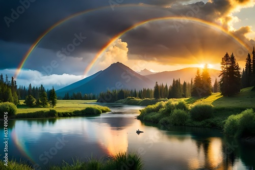 rainbow over the lake generated by AI tool
