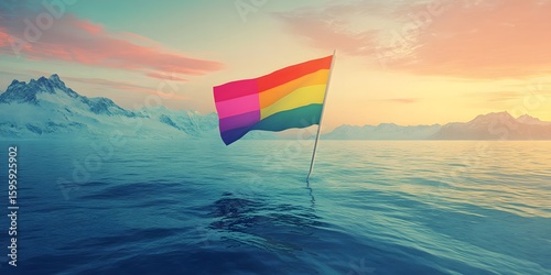 rainbow, pride, flag, ocean, mountain, sunset, peaceful, landscape, water, sky, nature, summer, beach, sea, horizon, view, colours, vibrant, hope, love, equality, freedom, community, symbol, gay, lesbian, bisexual, transgender, queer, tolerance, acceptance, diversity, inclusion, support, serene, tranquil, calm, serenity, inspirational