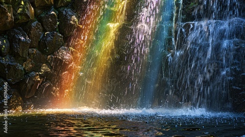 Rainbow Waterfall: A waterfall with water changing into rainbow colors in every drop.