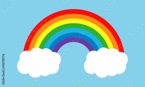 Rainbow with clouds on sky. Colored rainbow vector illustration. Vector background.
