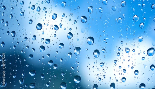 raindrop, blue, window, water, glasses, drop, light, sky, cloud, blur, texture, nature, pattern, detail, circular, shine, transparency, blurry, fresh, cool, rainy, perspective, macro, day, bright, atmosphere