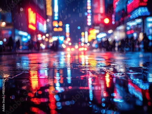 rain, neon, reflections, night, city, urban, bokeh, puddle, headlamp, traffic light, silhouette, pedestrian, nightlife, colourful, vibrant, moody, atmospheric, out of focus, street scene, downtown, glowing, cinematic, evening, motion blur, city lights, nightscape, streetscape, glistening