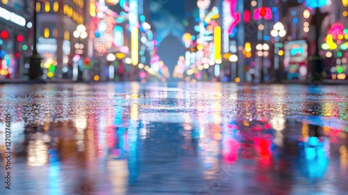 Rainy Night Cityscape: Vibrant Reflections on Wet Pavement